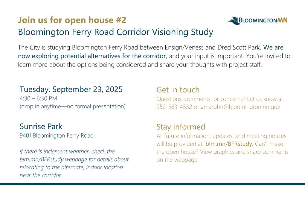 Bloomington Ferry Road Corridor Visioning Study has finished this stageJuly 10 - Planning Commission Update, https://www.bloomingtonmn.gov/plan/events/planning-commission-meeting-2025-07-10