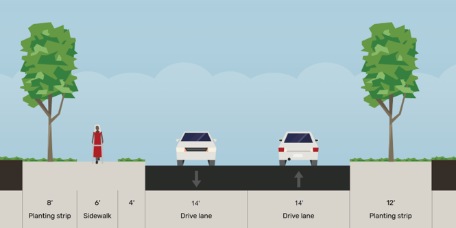 - Constructing a new 6' sidewalk with grass boulevard, west of the new west curb;